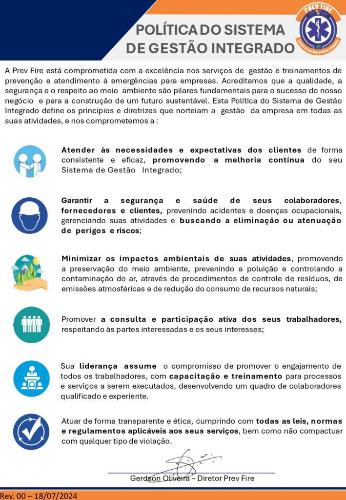 Na Prev Fire, acreditamos que qualidade, segurança e respeito ao meio ambiente são pilares fundamentais para o sucesso de nossos serviços e para a construção de um futuro sustentável. 🌱✨ Por isso, adotamos o Sistema de Gestão Integrado (SGI), que orienta todas as nossas atividades com base em princípios sólidos e responsáveis: ✅ Atender às […]