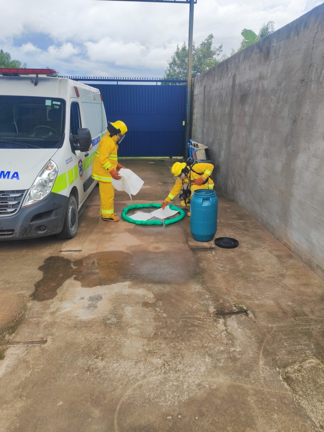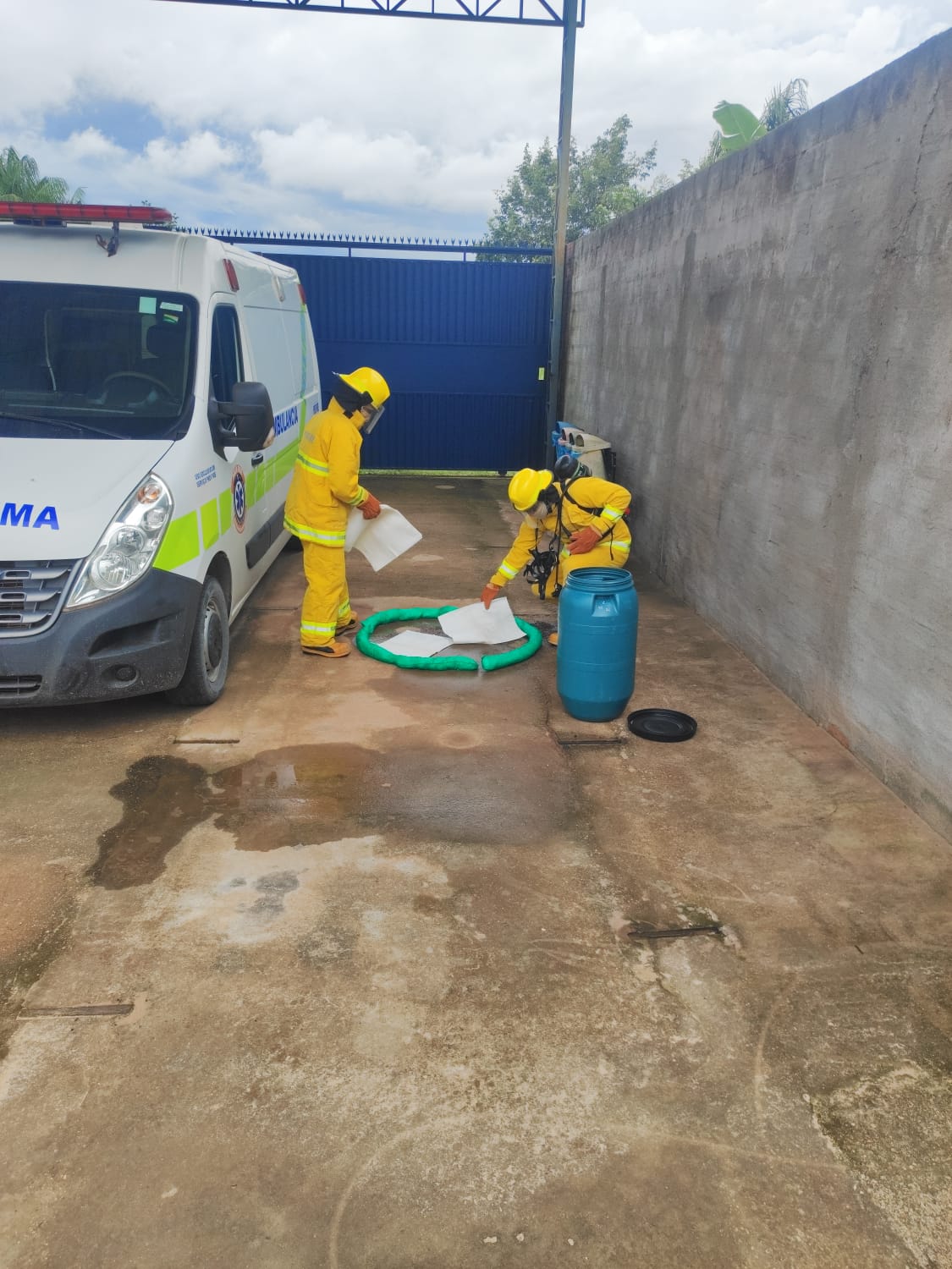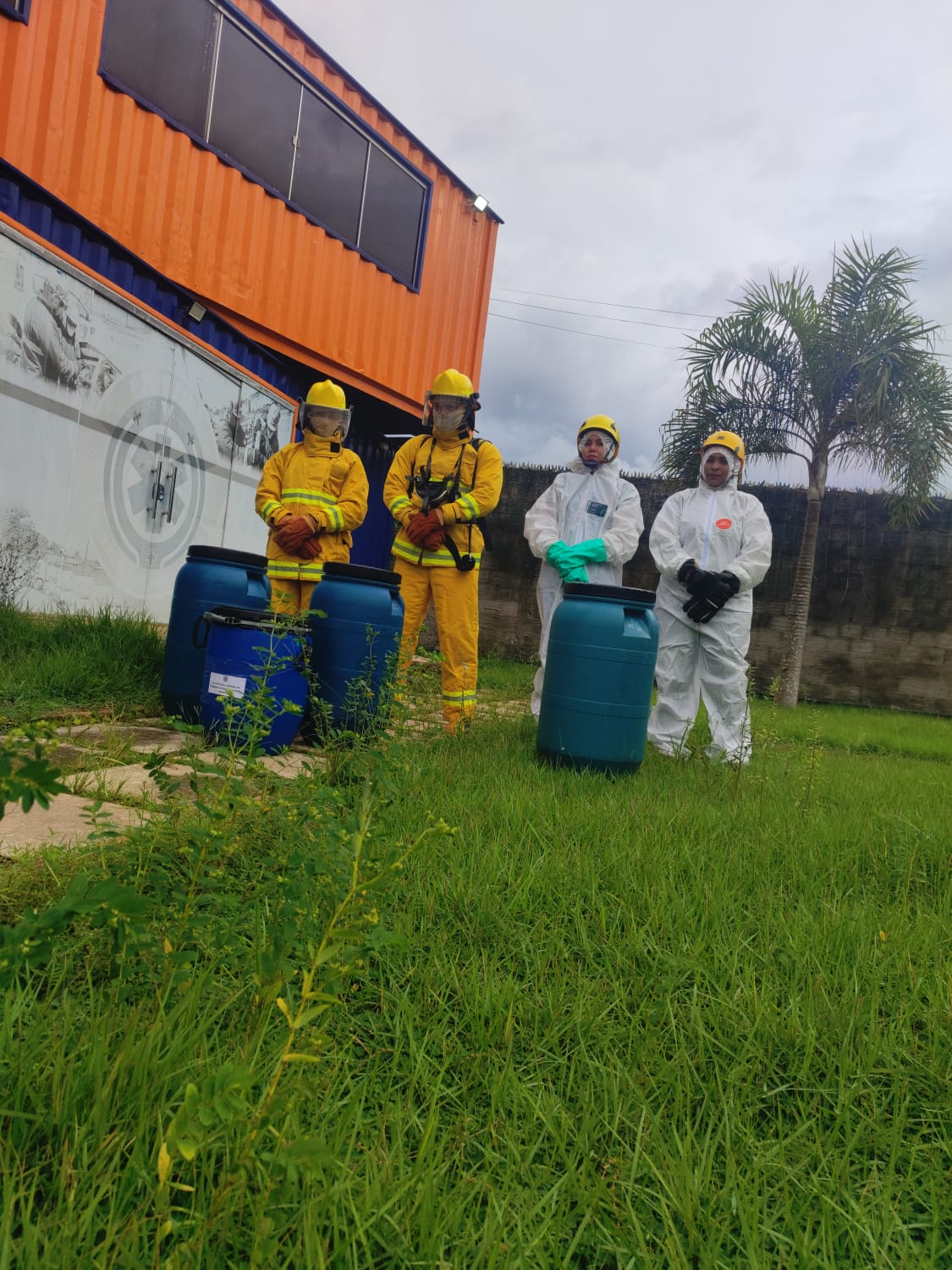 Contenção de Vazamentos: Foram realizados exercícios práticos simulando vazamentos e derramamentos de produtos inflamáveis de tambores de contenção (bueiros químicos).