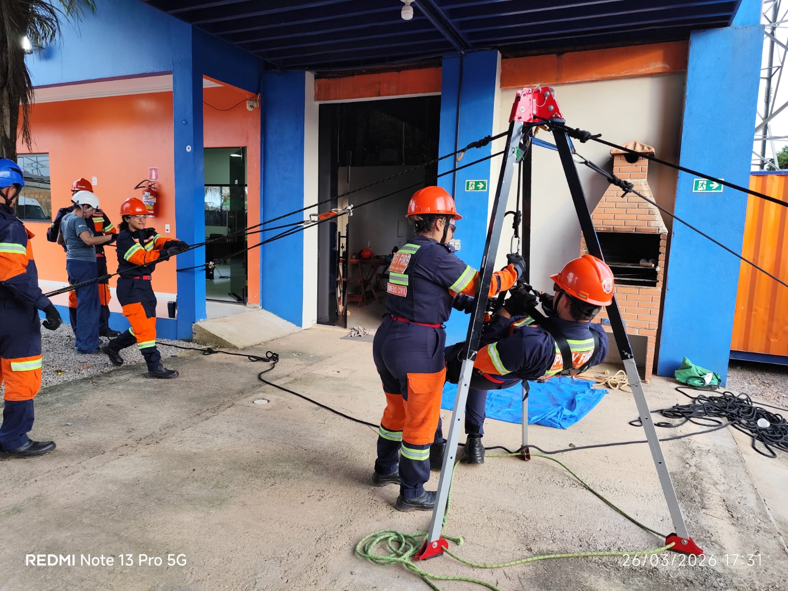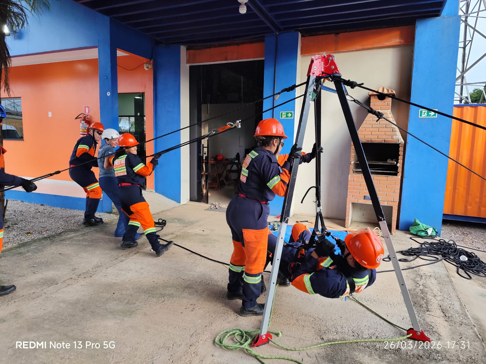 Seguimos firmes no curso de Resgate Técnico Vertical em Paragominas–PA. Até aqui, muita prática, técnica refinada e tomada de decisão em cenários reais.